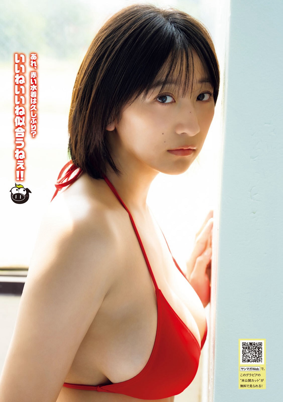 Fカップ都丸紗也華,赤ビキニグラビア