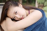 森の中でアンニュイな表情を浮かべ佇む八頭身美女。 彼女の名は青木胡杜音【水着画像】