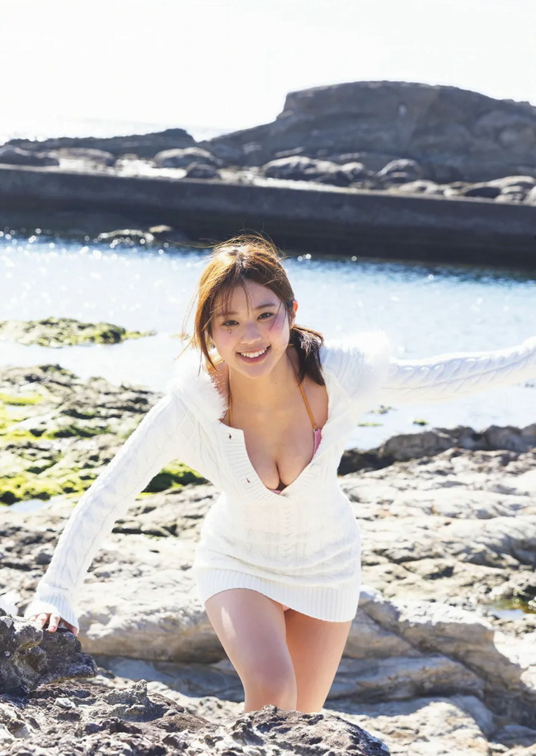 奥山かずさ 戦隊ヒロインの最高到達点 今回の極寒水着グラビア。寒かった......よね?